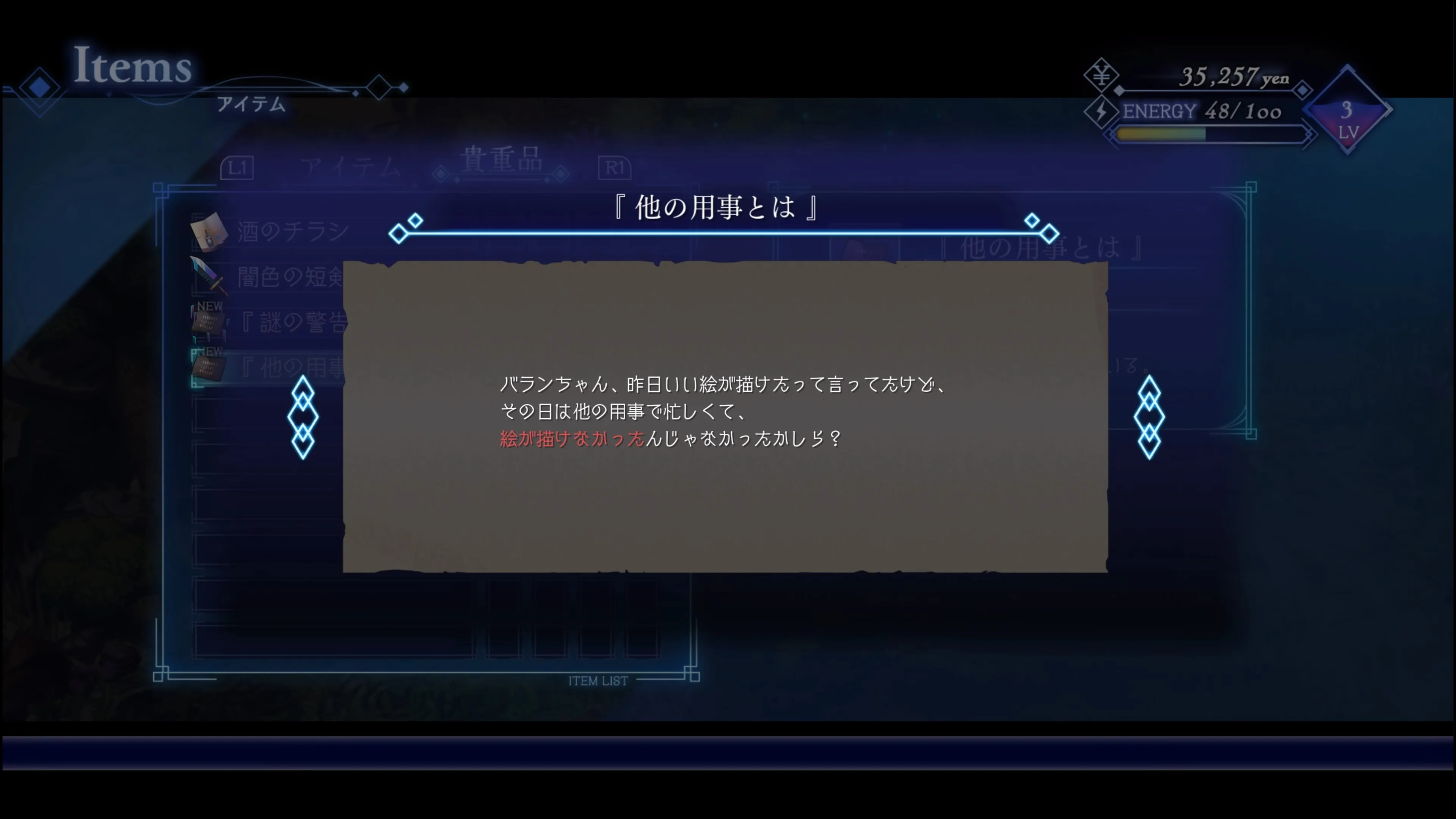 装備品を整えつつ、呑み仲間との会話を進めることに