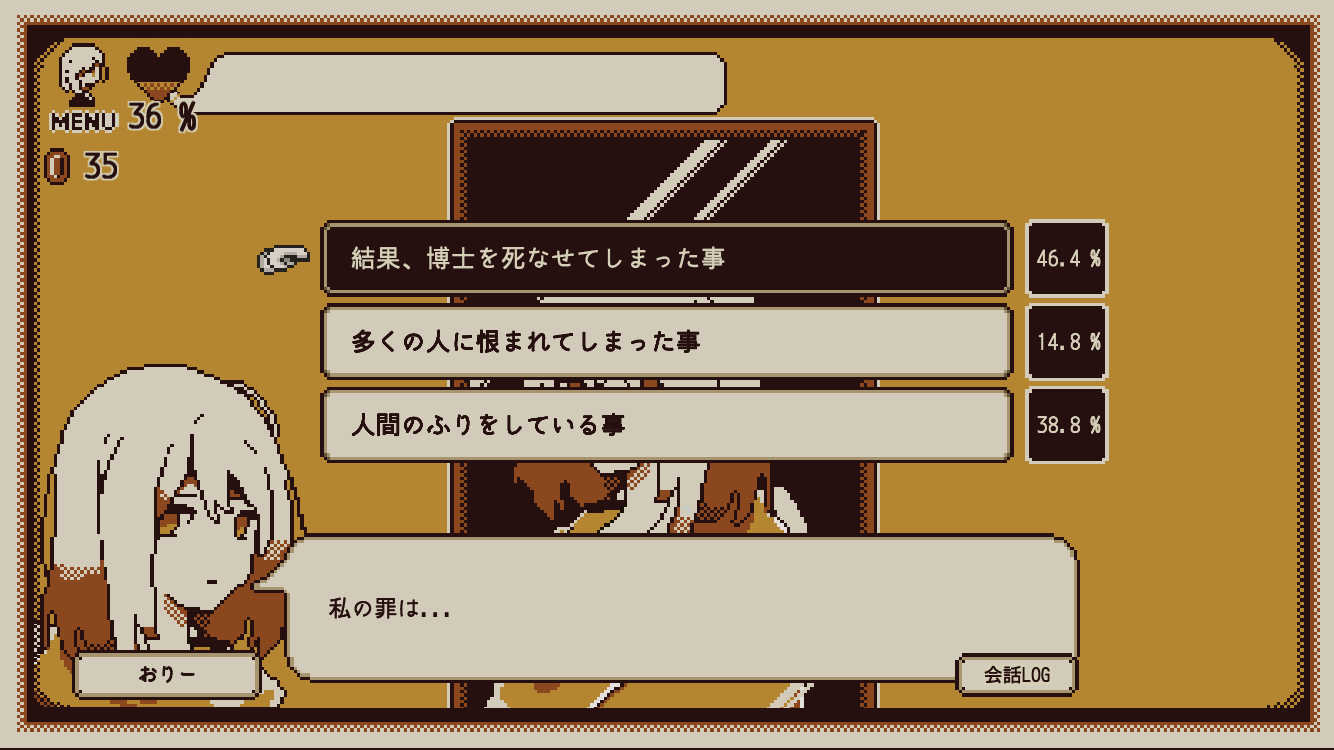 面白かった!!ストーリーや世界観が本当に好みなので、この製作者さんの次のゲームも楽しみです
