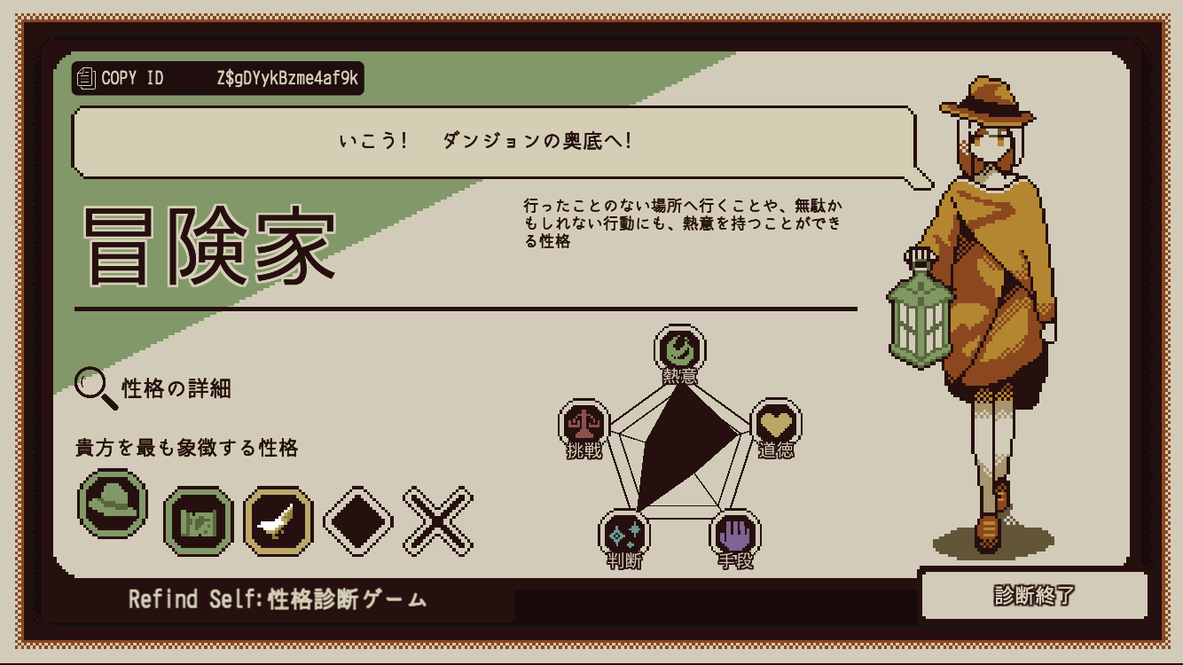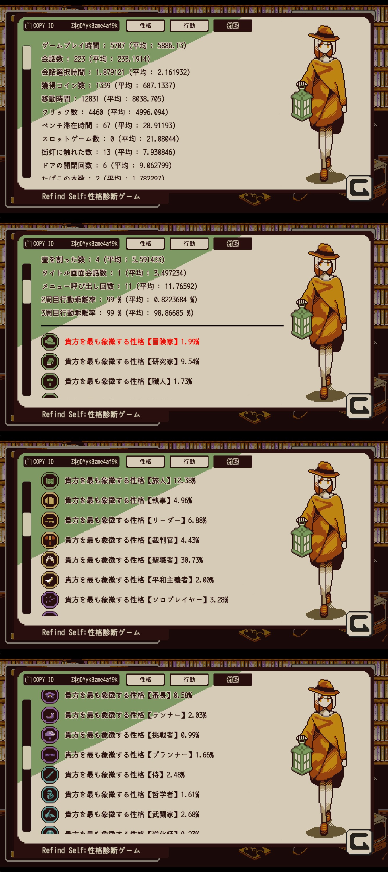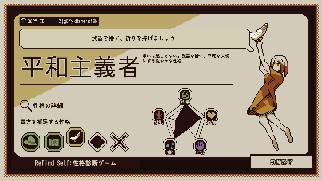ゲーム内の行動で性格を測るという趣旨のようです