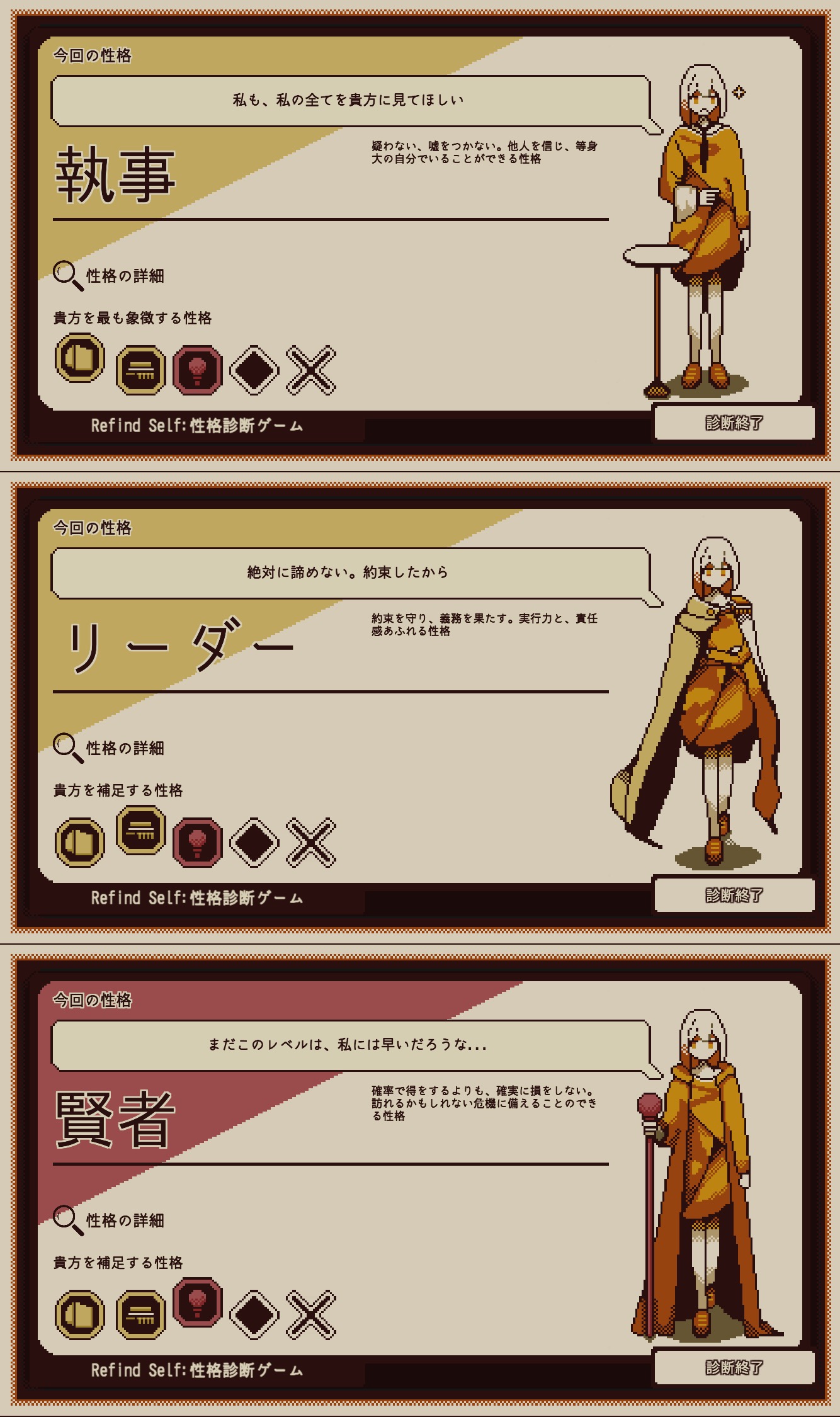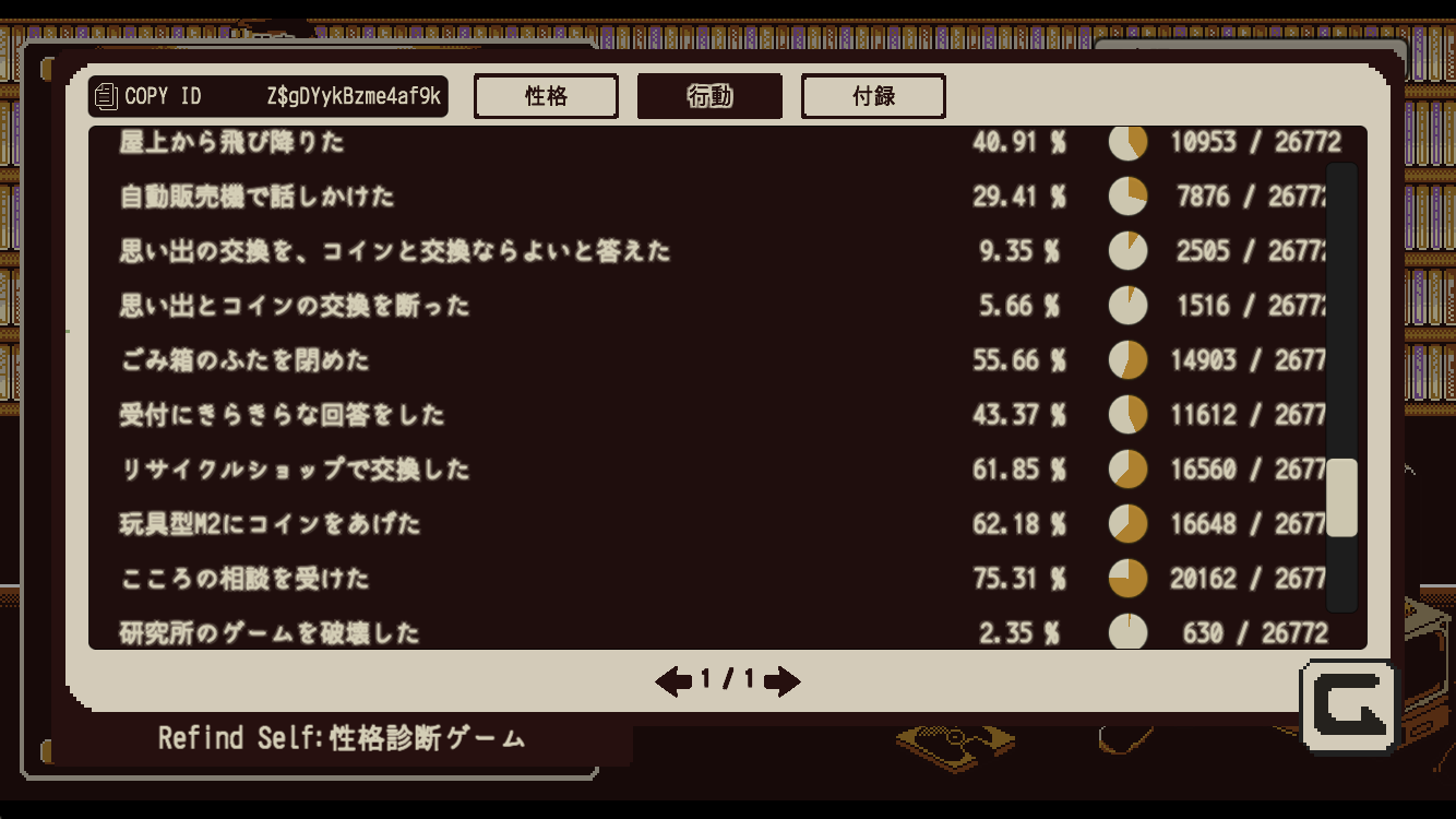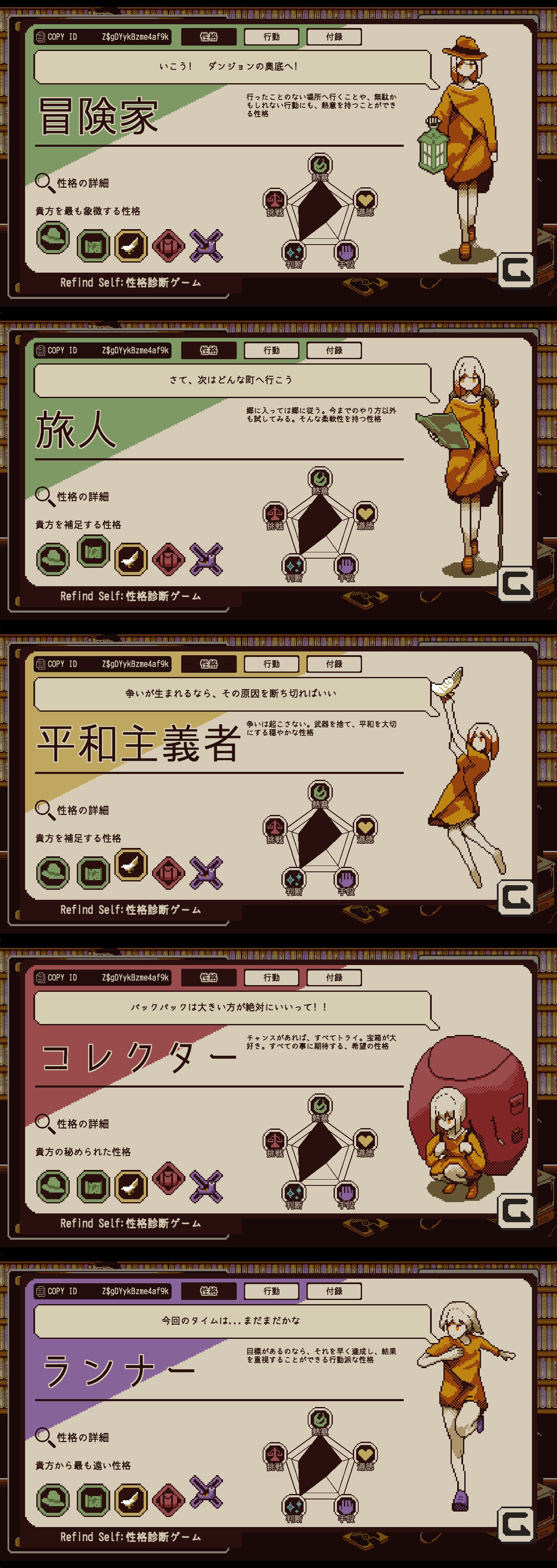 ゲーム内の行動で性格を測るという趣旨のようです