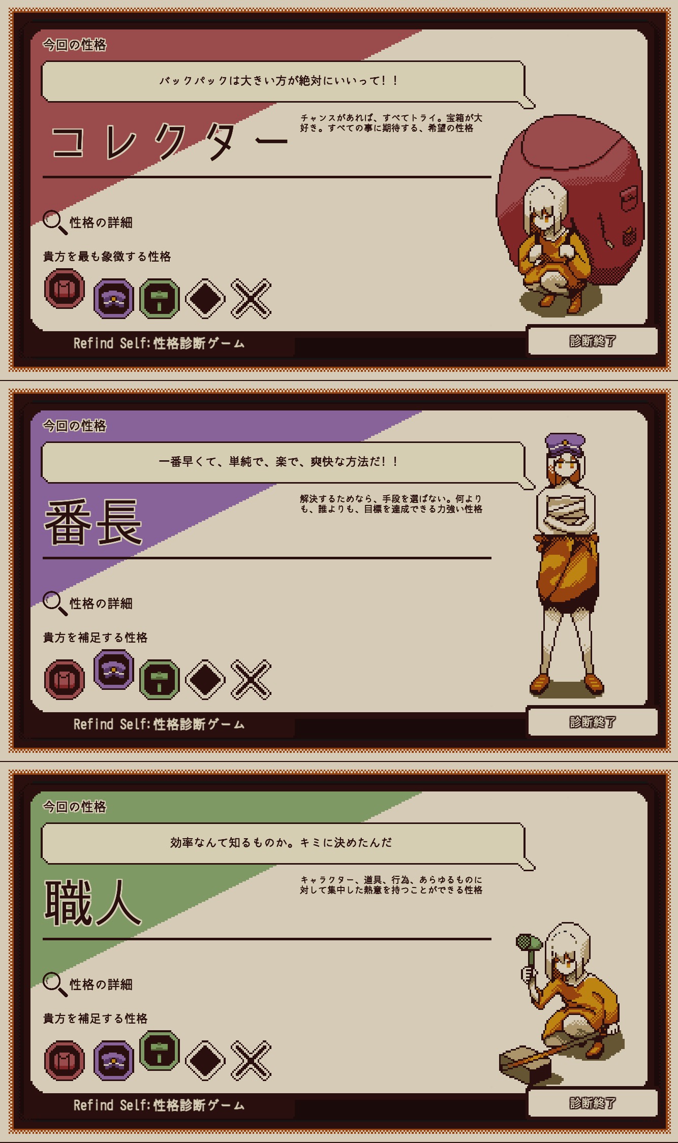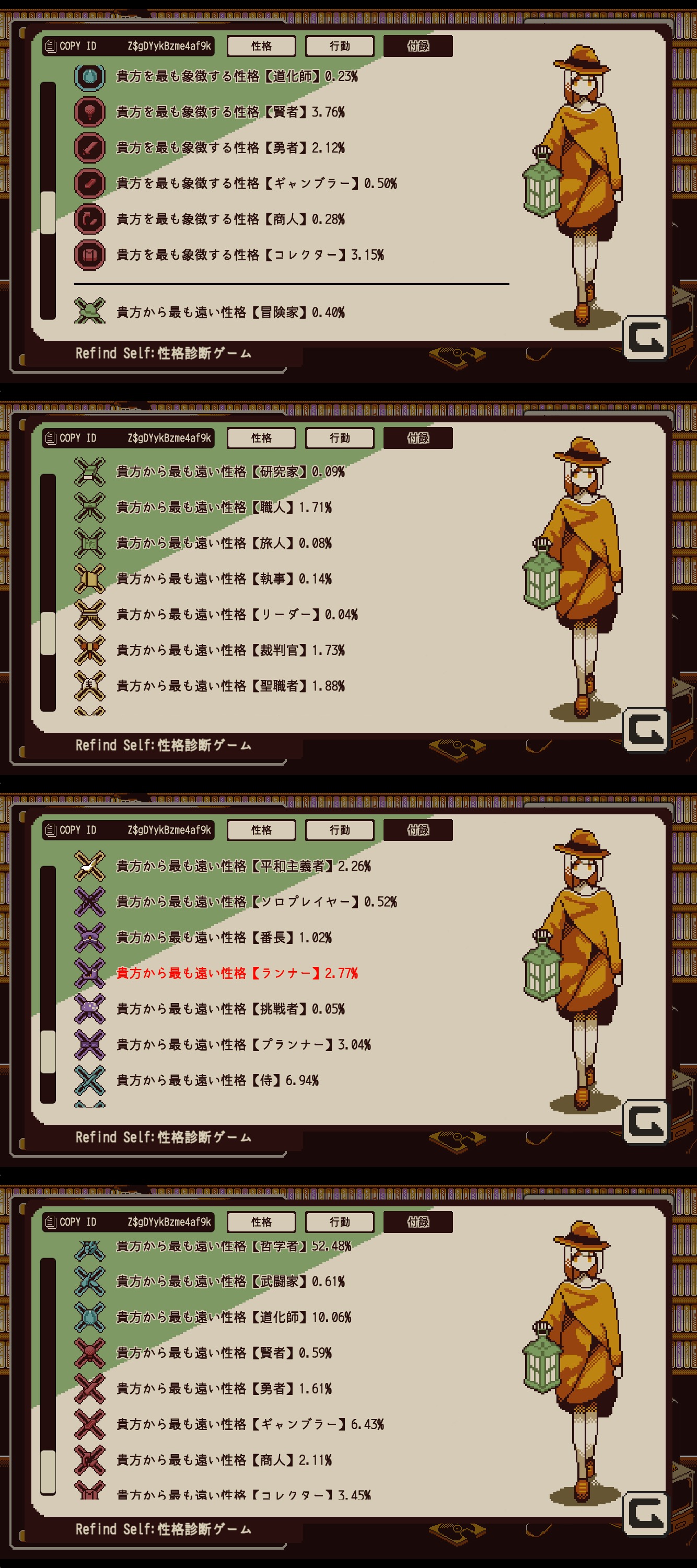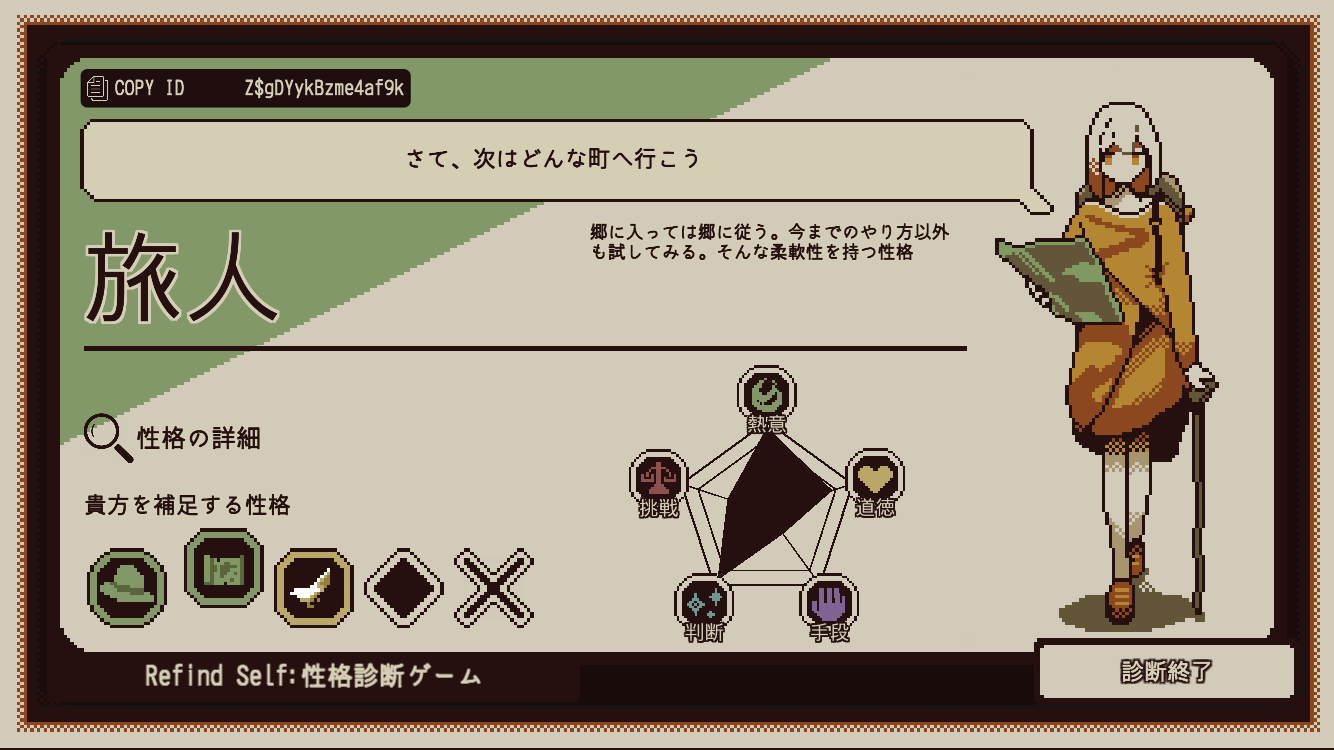 実際の性格というよりはゲームプレイスタイル診断の方が近い気がします