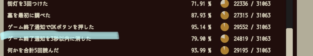 すぐ進行度100%になっちゃうからまだまだ全てを見れていません