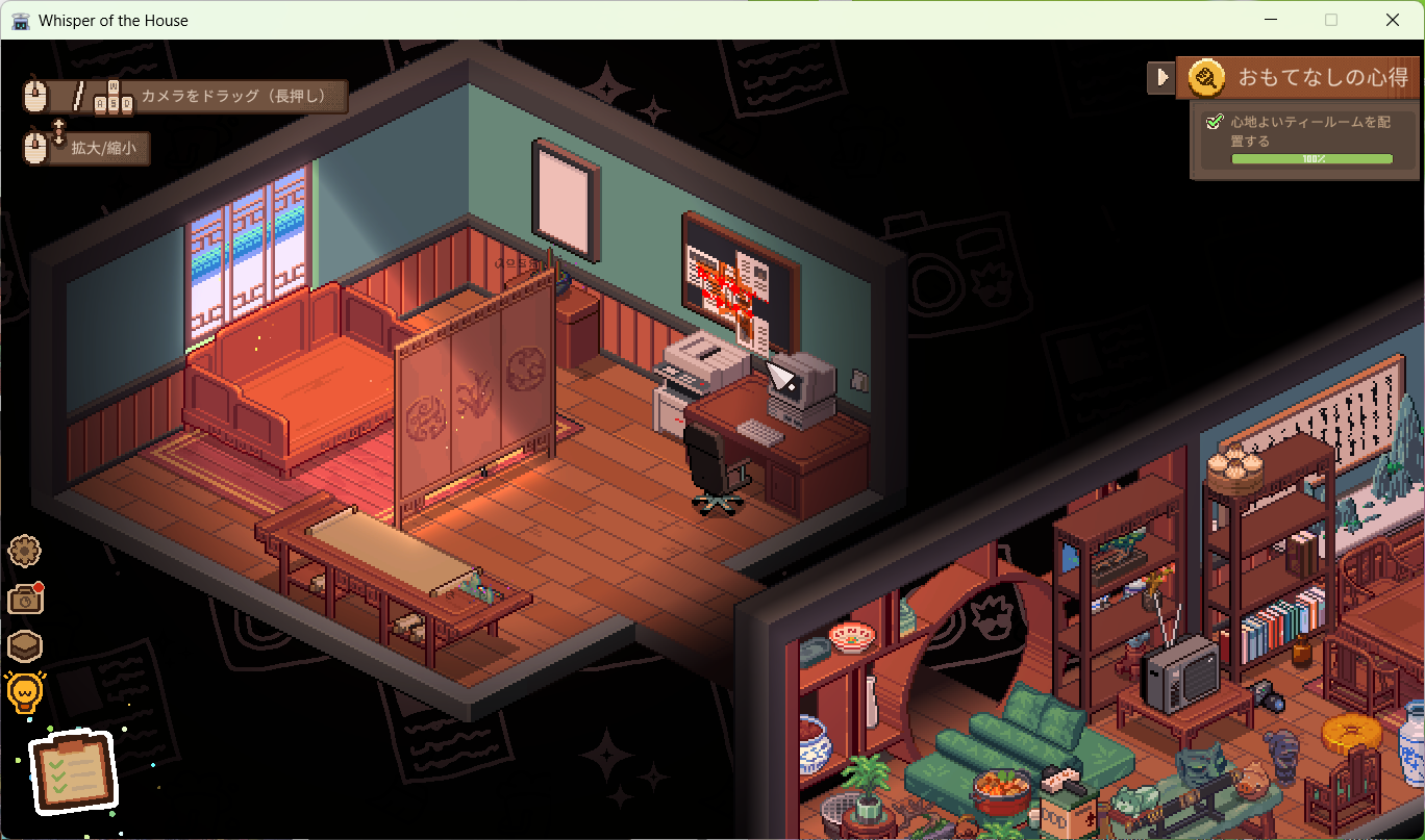 まだチュートリアル的な最初の家しかやってないけど、この感じ…Unpaking…!!